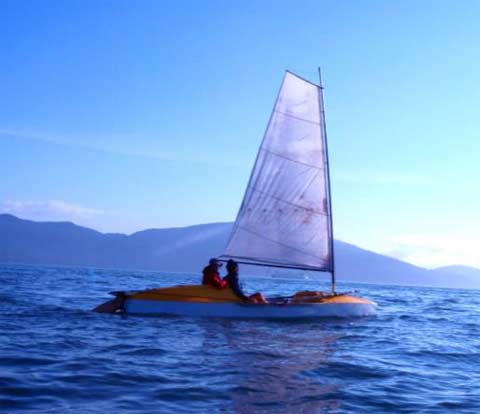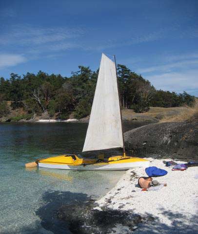 I was narrowing in on the concept. The boat would be small and light enough to haul behind a bicycle and easily drag up on a beach. She would be seaworthy enough to go almost anywhere, maybe even across oceans. She'd be fun and fast sailing (like my old Capri Cyclone racing dinghy). Sliding-seat rowing would provide aerobic exercise and reasonable speed when the wind didn't blow (at least as fast as a sea kayak). There'd be a cabin so that I could find an anchorage, throw over the hook, and be settled for the night (as I had on an old Venture 17).