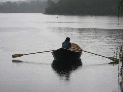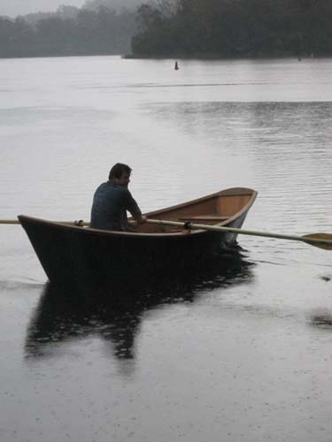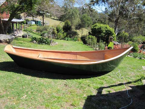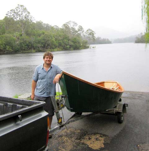 I have attached some pictures of the boat on the Brogo Dam. I will send more as I finish off the boat and thanks again for the plans. They were very easy to follow even for a first-time builder, and the boat not only floats, but is a pleasure to row.