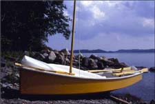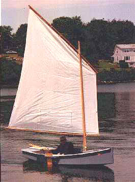 Mixer is a stab at mixing some features of my prams with the features of the original Roar rowboat. The prototype Mixer was built to perfection by David Boston of Factoryville, Pa. That's him sailing on vacation in Maine.