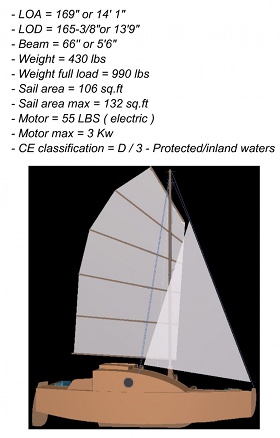 14 foot simple cruising sailboat for two overnight or three for a day cruise, design for protected or inlands waters.