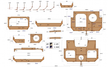 The plans detail all the part dimensions for both models, the parts nesting on plywood sheets, a complete building sequence in 3D and some detail pictures.