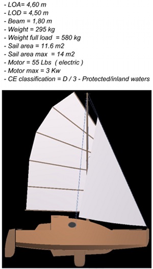 The junk rig sail is a major part of the design, with a hinged batten system that improves performance to windward.