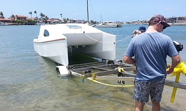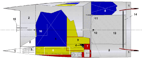 The time proven wood/glass epoxy composite technique is easy to master. The result a light and fast catamaran. The boat is easy to build, also by a first time boat builder. The hulls for instance are single chine hulls. The cabin sides are made from a single sheet of plywood. The bows are now made from single pieces of wood, so the whole construction is now simplified.