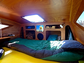 The boat sleeps 3 to 4.Good size pantry. This boat can be build for a fraction of the costs of any other boat of this size. See list of materials and calculate for your self.