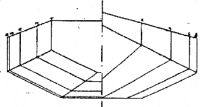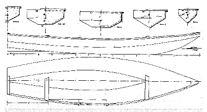 I'd like to point something about the way I draw the line on many of my boats. I make card models of my designs which help me check the panel expansions and allow me to get a 3D check of the shape. The models are done in the same scale as the blueprint, in this case 1/8 and the model is fairly large. So I knew that Oracle has nice curves all around. But if you look at the end view in the lines drawing you see all straight lines! In a way this is a throwback to the original "instant" boats which had hull panels made from straight saw cuts. It is easy for a designer to make the jump to more flexible shapes, that is hull shapes which can look like about anything you might imagine being made from plywood. Back when I started drawing boats I noticed some of the nicest shapes in 3D had end views made totally of straight line segments. Don't ask me why. Not only does that give a nice shape, the designer's job is simplified. For example, with Oracle I might start by drawing the top view. Then I might sketch in the side view needing nothing more than an idea of what the stem, midsection, and stern will look like. Next I draw the end view which will include those elements connected by straight lines. In normal mechanical drawing it only takes two views to totally define an object. So without even drawing the side view of the boat the shape is defined. It only remains to go back and figure it out and adjust the top view, etc., etc.. Happy is the designer who gets it right the first time through.