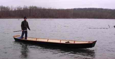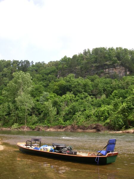 Kyle Kosovich in Springfield, MO, built the prototype. He knew the history of the boats and is using his just as the old ones were used, (which is pretty unusual). Don't even ask me about putting power on such a long light hull. You are on your own there. Remember these were never used at high speeds or in big open water. They are slow stream drifters. Here is Kyle's boat in the very waters the original boats floated: