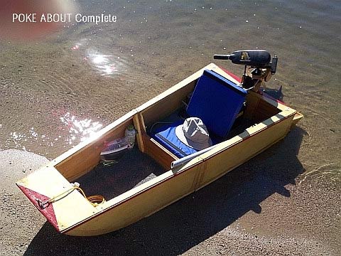 At the present time this is the only boat in my garage, as all others have been sold to make way for some new designs on the drawing board. As a result, I have spent quit a few outings on the lake with POKE ABOUT, and have found it to be a fun little boat. It is easy to transport, launch and operate, and one can just poke about the coves and tributaries with ease, as it turns on a dime and draws only 4 inches fully loaded.