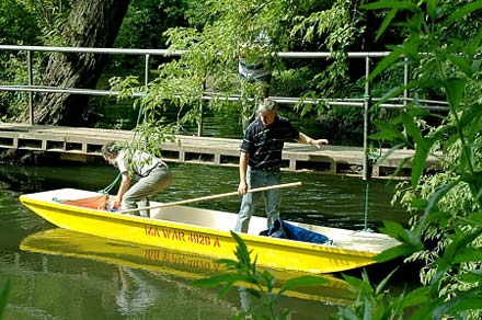 The second notice is that polepunt responds to oar action very well. After more of less a strong push of a pair of paddles she smoothly went a long distance on calm water. Looks like rowing will be successful as well, when an oarsman will take a seat at the center of the boat, and will pull the boat with the pair of 7 foot oars (we have chosen a pair of heavy ones for the Vistula , because of possible wind and waves acting on her open area against the boat). As for using a pole, it's really amazing and effective power, but needs a bit of experience. Worth learning!