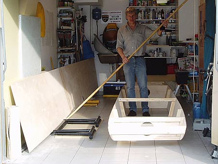 Do you have a swamp in your back yard? Turn that into a positive thing with a tradional punt that you push through the shallow water with a pole. I think this sort of boat has a long history and the similar shape in Chapelle's great book AMERICAN SMALL SAILING CRAFT goes back to at least the 1700's. Those weren't built of plywood, of course, and would be a lot heavier than this one. Actually Chapelle shows the shape of the old one as more elaborate than this one but I'm pretty sure this one is in no way harmed in function by the simplicity of its shape.