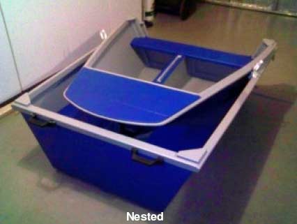 As you can see, much thought and consideration has gone into the creation of the Pollywog, so named after the small Amphibian that morphs into a Toad. This 2 part nesting boat can sit atop the deck of a larger ship, consuming less than 20 square feet of space. Yet, morphed to 9 feet in length, it can transport 3 people, plus gear, to distant places with security provided by the built-in buoyancy and ample freeboard. This is truly a workboat, weighing less than 100 pounds, that can go anywhere and do anything, and costing only about $250 to build.