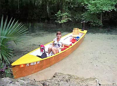 Several of these canoes have been converted into trimarans or outrigger canoes for excellent sailing performance. Also as a diving or fishing platform. The outrigger structure is very light and removed from the existing canoe structure completely. Outrigger plans HERE