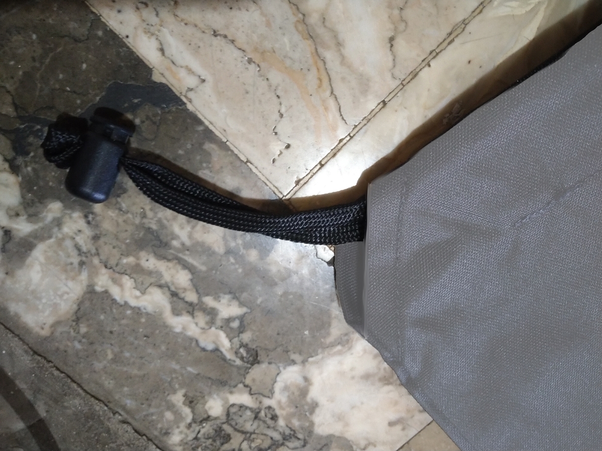The long sailbags are made with heavy grey Nylon. It is not waterproof. We find waterproof bags often accumulate a puddle of water inside.