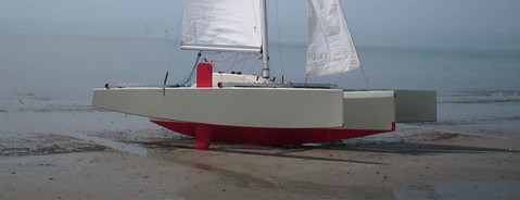 The aim of this boat is not to sail as fast as a F18' catamaran, but to sail in micro cruising with a happy trimaran. Compared to the other trimarans, the net is placed 70cm above the water: it is a very high position, for this lenght of boat. It will enable the crossbeams to be sufficiently high above the waves. It will avoid any "brakes" in the waves, and avoid too many sprays too. The boat can beach easily.