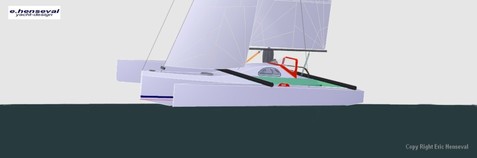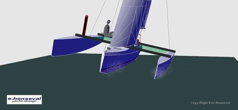 A: I think we will reach 15 knots comfortably in good conditions, and I think more. We expect too a good comportment upwind, with centerboards placed on each floats. The boat has been designed to be safe as long as possible if the wind goes up