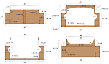 The plans details all the parts and frames dimension, the parts nesting on plywood sheets, and a 3D model.
