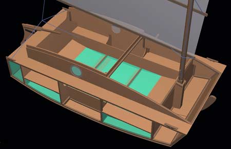 The junk rig sail is a major part of the design, with a simple wooden hinged batten system that improves performance to windward.