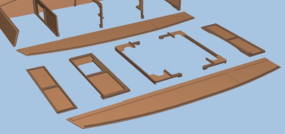 Only – 3-1/2 sheets of ACX 5/16 or 3/8 plywood are required. I recommend using epoxy, without glass fiber, on the bottom of the hull, chines and all edges. The plans detail all the dimensions of the parts, the parts nesting on plywood sheets, and a complete building sequence in 3D.