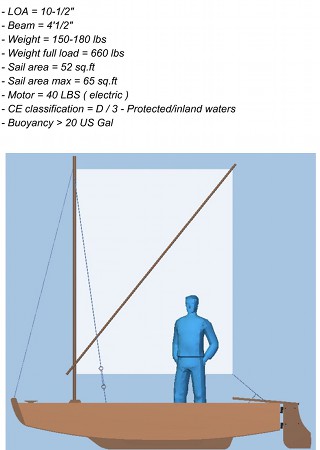 10-1/2 feet simple cruiser sailboat for one to three, design for protected or inlands waters.