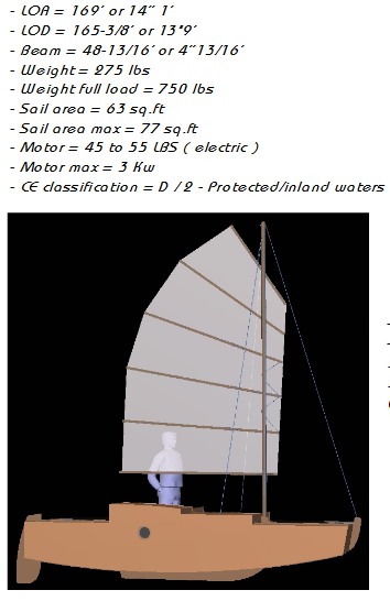 14 foot simple camper sailboat for two, designed for protected or inlands waters.