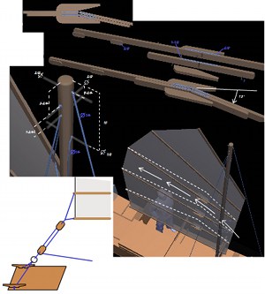 The junk rig sail is a major part of the design, you can obviously replace it by a lug sail without any structural change.