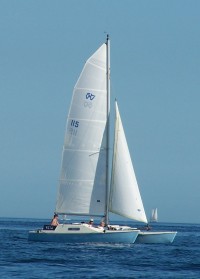 A bigger rig (known as F1 rig) is available (25sqm) for those who want more performance. It's shown below fitted to my old Strider Club, Yeta