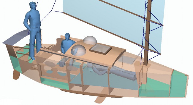 Simple sharpie pocket cruiser for coastal and off-shore cruising.