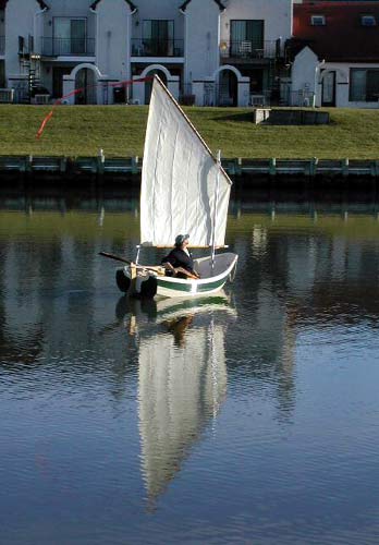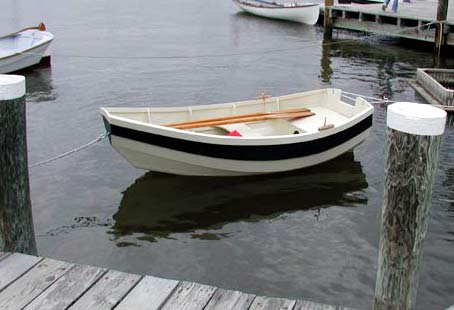 She is very strong, light enough to manhandle, and has enough stability to be a really fun sailor, as well as being steady enough for the times when you are trying to heave a box of provisions up over the rail, you can stand up in this boat, you can get your six people aboard in calm weather (and still row) and with her usual load she is as capable in a wind over tide dark night chop as anything that you will find of this size.