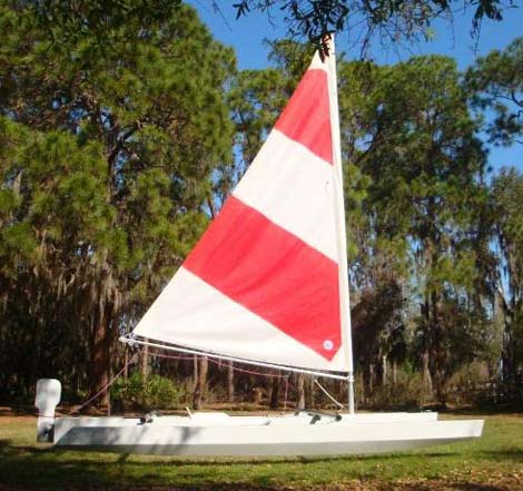 - Sail Area = from 107 sq ft (with base rig) to 148 sq ft (with sloop rig)