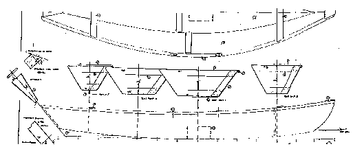 The hull is quite simple and light, taped seam from three sheets of 1/4" plywood, totally open with no frames. The wales are doubled 3/4" x 1-1/2" pieces to avoid the wale flexing my first boat had. I've added an aft brace to stiffen it up and give the passenger a back rest.