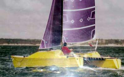 This photo shows my 1992 Strider with a F1 rig. The photo was taken from a Dragonfly 8m whose owner told me he was reaching at 18 knots. We sailed straight through his lee, much to his disgust/surprise.