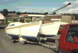STRIDER is the most popular of our micros as it offers a good compromise between speed, accommodation and low cost. It is available as a g.r.p. production boat while plans for wood construction are also available.