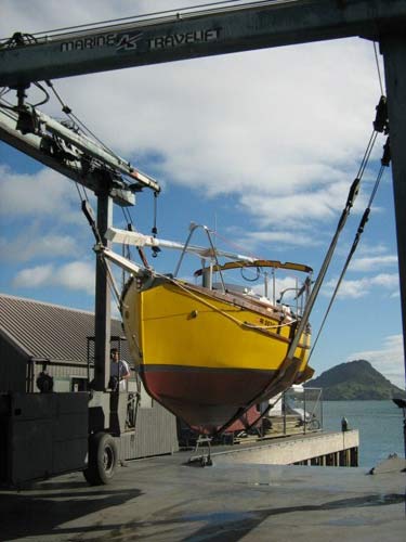 Sitting in the travelift on the way to the water she looks both slippery and sturdy.