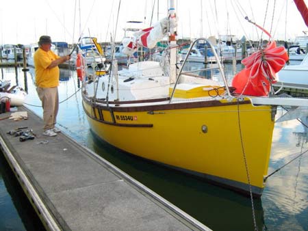 The very first sail The anchor rope lead back to the cockpit and some adjustment needed to the sails but shes looking good.