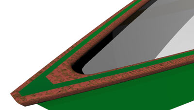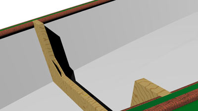 Several months later, I revisited those initial lines. My reasoning was a simple design challenge; "how can we make a dandy double paddle canoe from only two sheets of plywood?" In fact, it takes a tad more than that, but not much; some 1x3's for framing, some ordinary half-round for trim. Oh yeah - don't leave out the glue! Still, no lofty, detailed design brief, no lengthy client consultations, just seeing if I could make a version that had some of the wrinkles that I had noticed in the earlier construction ironed out. At the same time, this design offers a few "upgrades" intended to satiate the inveterate woodworker: breasthooks, inwales, and gussets mortised into the frames (which are shown to actual angle, unlike my inspiration...)