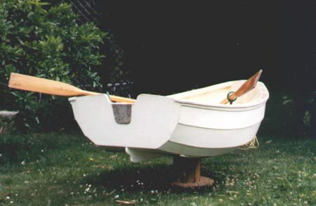 In trials we found that she rowed well for something so short, carried eight people for a few strokes of the oars without swamping and has stability that has to be experienced to be believed. This is one of the few small boats in which one can safely stand up and heave a carton of stores over the rail of the mothership.