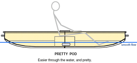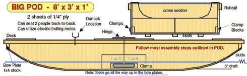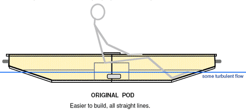 Having met the design criteria with POD, there was still something missing. Looks. With it's square sides and angled bottom it just wasn't pretty. So, to pacify the purists, me included, we are offering two options to the builder. Make it as designed with angled bottom, which is the easiest of designs to build, or with a nicely curved bottom, a little more difficult. The choice is yours. The plans include both versions, and the assembly techniques are very much the same. The following sketches should easily highlight the two designs. The plans will show the differences where required.
