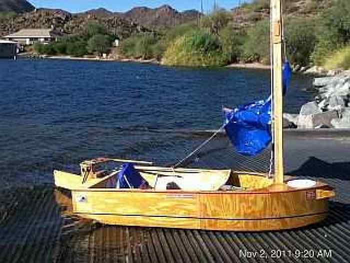 One of the elements of sailing that requires personal adjustment is the heeling of the boat. Some well designed boats heel just enough to make it pleasurable, others go to extremes and scare the heck out of you. Although this is a flat bottomed boat, it seems to behave well, and with the addition of the much needed daggerboard, excessive heeling can be sensed and the necessary corrections can be taken (let the sheet out, turn gradually) to prevent capsizing.