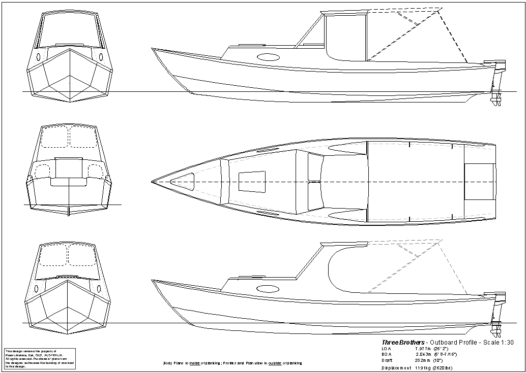 The accommodation can be "cozy". I'd like to string it out lengthwise to produce a long, narrow, low and light boat that is easy to tow and to power. Sharpshooter runs at 9 or so knots in the rough and about 19knots flat out, fully loaded, on 30hp. This is fine, so if the expanded boat could do that with maybe 50hp I would be very happy. The major difference being... I want to be able to run smoothly in a chop. (You know the sort of water I'm talking about, and 8 to 10 knots in those conditions would be fantastic if sustainable.)