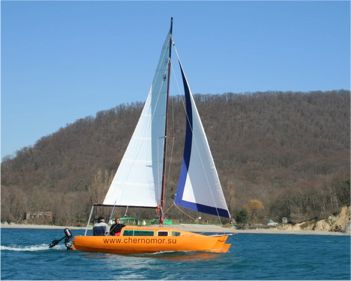 Oleg Zelinskiy built his Threefold 6 in Russia. In November 2008 he went out in extreme storm conditions to test his boat. With winds of 15-22m/s (30-40 knots) and gusting to 32m/s (65 knots), they sailed with storm jib and deeply reefed main. He reports that she handled perfectly, even with seas washing over the deck through to the cockpit. She achieved speeds of 15-17 knots and was responsive and under full control at all times. He says that stability was perfect and there was no hint of the boat ploughing in. Oleg is very satisfied with his testing of the boat in storm conditions.