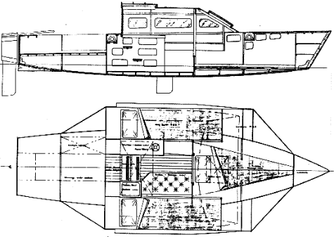 The Threefold 6 a trailable minimum cruiser for use on relatively protected waters. I drew her a long time ago to air some ideas which were in my head at the time. They were for an innovative folding system which would have made her a very versatile little boat, with unusual features. Aside from the versatility, the folding system also adds on a big cost factor so it did not take off. Anyway, I show her here for the interest of anybody who may like her concept.