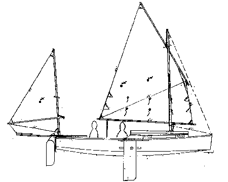 I have a large collection of boat plans and the internet offers many more plans, but nothing seemed to provide all of the features which I wanted. Jim Michalak's Toon2 design had some potential, but at 15 feet in length, its cabin is too short for me to lie down in. I commissioned Jim to modify Toon2. First, he lengthened the boat from 15 to 19 feet while keeping the same beam and depth. Second, we came up with a cat-yawl* rig using a balanced lug main and a sprit boomed leg of mutton mizzen. Jim was good enough to respond to my needs and kind enough to gently steer me away from my sillier ideas. He drew the plans and I built the boat. As always, it took longer than I expected and isn't finished as well as I might wish. Here is what I got.