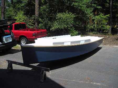 Toon 19 may be considered to be a sharpie with the chines cut off and replaced by "bilge panels". This hull form is a plywood incarnation of the round chined "non pariel" sharpies and is supposed to reduce eddying around the chines. It is easy enough to build in stitch and glue and has the advantage of a flat bottom for beaching.