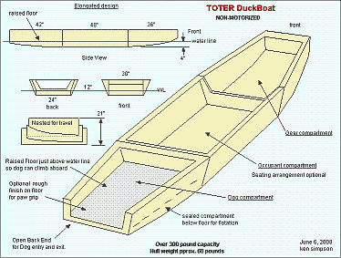 While searching for boats I came across the Duckworks Magazine website and was amazed at what people where building. I then noticed the ad for Ken's Toter on the site. The measurments given where immediately checked to see if they would fit in my Jeep and they did. Upon purchasing the plans I noticed Ken included plans for a larger version and the brainstorming began. I contacted Ken and asked some basic questions about a small platform on the back for a dog and he immediately responded, after a few emails back and forth on ideas Ken drew up the plans for an open ended duckboat.