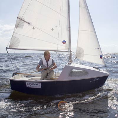 On our Toyboats we have made several trips along the northern coast of the Gulf of Finland. They provided an unforgettable experience, because the feeling in a small boat is much sharper and brighter than the experience from the protected cockpit of a large yacht, where you sit high and away from the water. The reader may think such a small boat isnât safe, but I can answer these concerns: Just look at the Optimistsâwhere kids actually chase strong winds and a big waves! More than once Iâve sailed my Toyboat in three-foot waves and 20-knot winds and the boat was very confidence inspiring and we did some incredible surfing! Against a short chop, you just heel the boat and she cuts through on her chine. The boat has 2 air compartments in the stern under the cockpit seats for a total volume of 16 gallons.