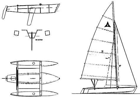 I learned about the Triad back then from Jim Brown, the designer of the SeaRunner series of trimarans. I had called Jim to ask if he had plans for a daysailer tri that would be easy to build. Instead of selling me plans. Jim told me about the Traid, saying that it was a l9' bomb, which I found out later to he very true.