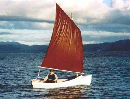 "Truant", designed for those who want to play hookey, is a very capable daysailer, with enough performance to be fun, small enough to go onto a garden trailer rather than a custom boat trailer, big enough to take a couple of less limber adults and their camping or picnic gear or a small mob of teenagers away for a small adventure. She is so designed that she will be comfortable to sail, dry in most weather, capable beyond almost anything else of her size and almost impossible to capsize. Her wide beam and smallish centreboard cause her to slide off sideways rather than tip out, her generous freeboard and wide decks help keep the water outside where it belongs and she has so much enclosed locker and air tank space inside that should the unimaginable happen there is enough buoyancy to float her crew completely clear of the water when fully swamped.