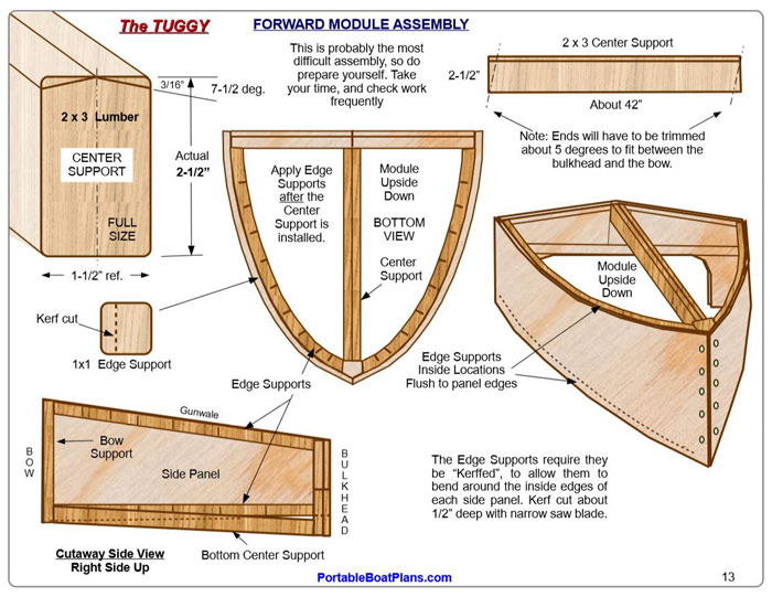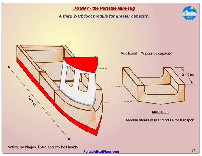 The idea for The TUGGY came from my good friend Craig Titmus of Australia, for a Portable Mini Tug Boat. It includes an ample beam, good freeboard, generous internal volume, multi-seating, and safety buoyancy. It is sturdy, easy to build, portable and utilizes up to a 5 hp max gas outboard motor for power.