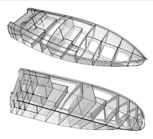 This method of design enables the boat to be constructed in a strong monocoque form, with all of the frame and seat panels forming part of the structure.