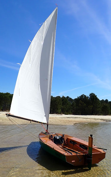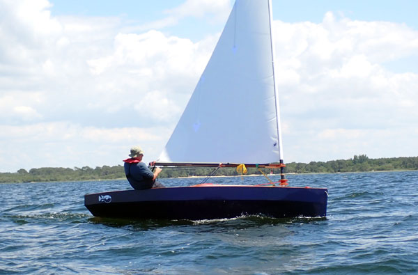 The boat can handle two sailors of course, but another feature is that the centerboard can be weighted if desired, to increase stability, and allow for more canvas (8,8m2) for better performance. The board would then lift up to the rear on a winch.
