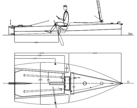 Aurelio: "this is my "idea" of a sailing and rowing boat to Participate in the Velaraid ..... a singlerowing position, a foredeck for sunbathing, roller furling for easy sailing and an outboard motor"